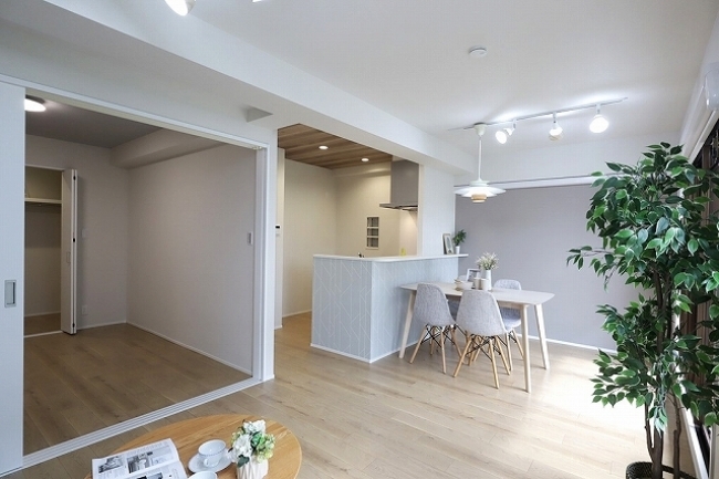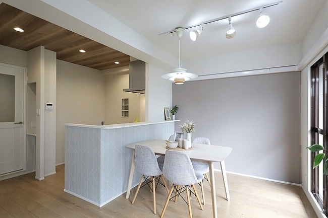 ◆ 室内は綺麗にリフォームされていますので、入居前に大きな出費無く、資金計画が立てやすいでしょう。洋室には、壁掛けエアコンが現状では設置できません。キッチンからも、洗面室へ入室可能で便利です。また、キッチンから暖気が流れて、冬場でも寒くないでしょう。カウンターキッチンは見通しがいいので、人気ですね。ただ、サイズはあまり大きくないため、調理スペースは確認しておきましょう。リビングには建物の柱が出っ張っておらず、家具類が配置しやすいでしょう。