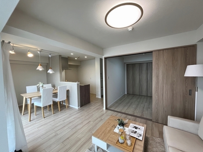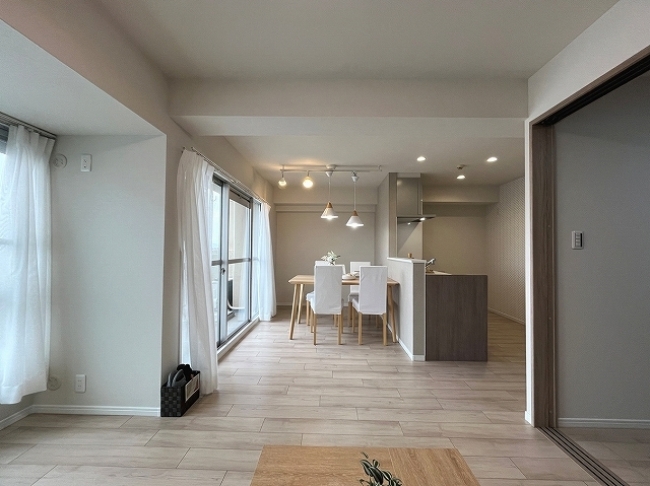 ◆ 室内は綺麗にリフォームされましたので、入居前に大きな出費がなく、資金計画が立てやすいのは嬉しいですね。 5帖の洋室には、壁掛けエアコンが設置済みとなっています。最初から備わっているのは非常に助かりますね。各洋室には大きめのクローゼットが配置されていますので、衣装を沢山お持ちの方でも安心して収納できそうです。 リビングとダイニングは家具が配置しやすく、それぞれのエリアで分かれているので、使い勝手が良さそうですね。バルコニーは決して広くありませんので、サイズ感を事前にしっかり確認しておくと安心ですよ。
