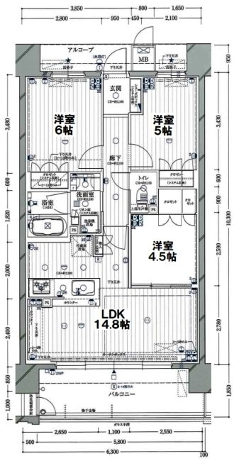 - 専有面積に防災備蓄倉庫0.5㎡含む、アルコープ5.22㎡、インターネット使用料:月990円、住戸セキュリティ費:月165円