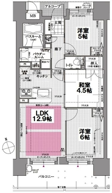 - 専有面積にメーターボックス0.96㎡含む、アルコープ4.06㎡