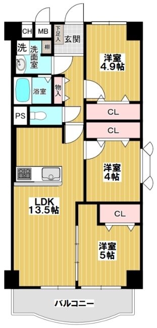 - ◆ 線路が近いので、窓を開けて、電車の騒音は許容範囲なのか確認しておきましょう。南向きは、冬は暖かく、夏は涼しいですよ。リフォーム済みで、洋室4.9帖と洋室4帖には新しくエアコンが設置済みです。廊下に物入があると、必需品などの備蓄に便利です。各部屋に収納は設置される予定ですが、容量は必ず確認しておきましょう。