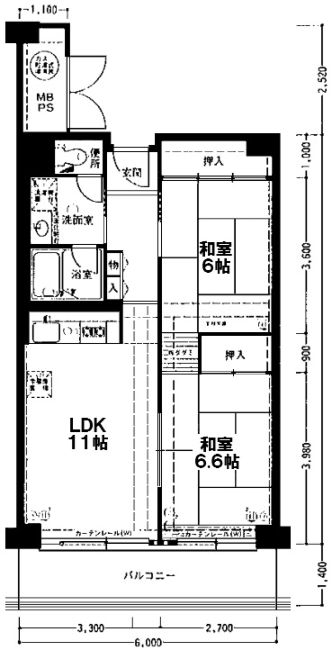 ◆ エレベーターが目の前なので、出入りが楽ですよ。廊下に物入があると、必需品などの備蓄に便利です。洋室6帖の空調は、和室6帖を利用することになります。リフォームを前提に、予算立てしておきましょう。この広さでフルリフォームだと、およそ600万円以上は必要でしょう。1~2人暮らしには、程よい広さなのかもしれませんね。